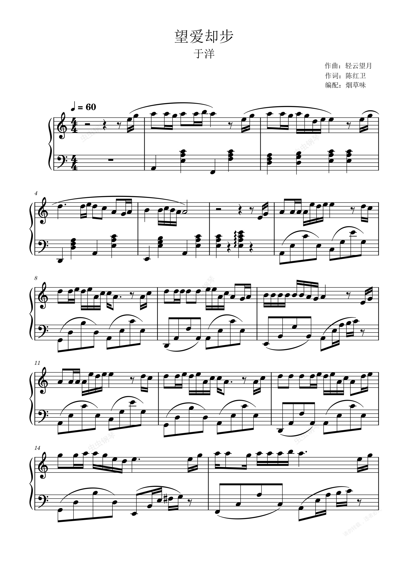 钢琴谱:望爱却步(C调简单唯美)
