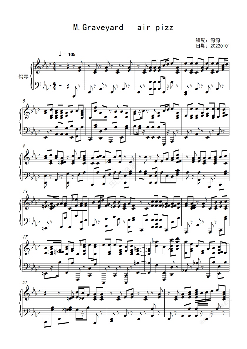 钢琴谱:M.Graveyard - air pizz 纯音乐 完美独奏谱
