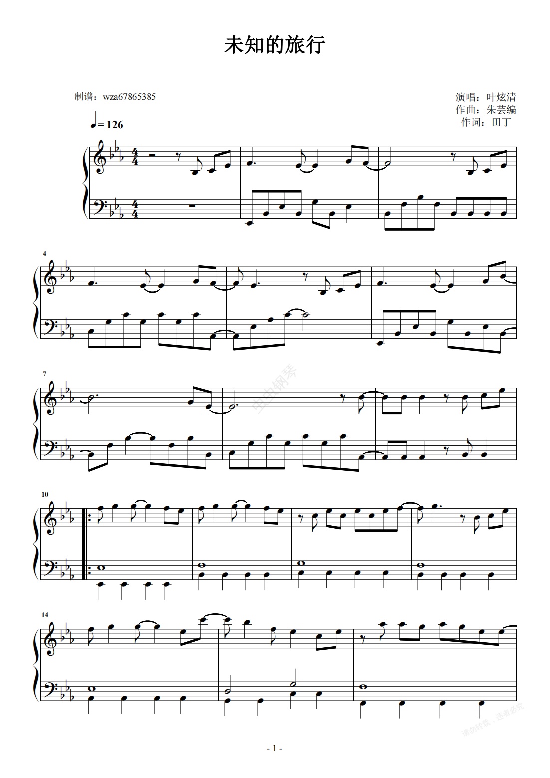 钢琴谱:未知的旅行