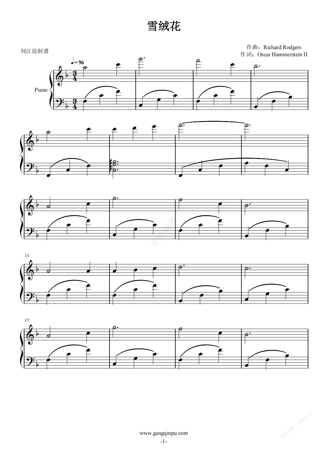 钢琴谱:雪绒花(F调简易好听版)