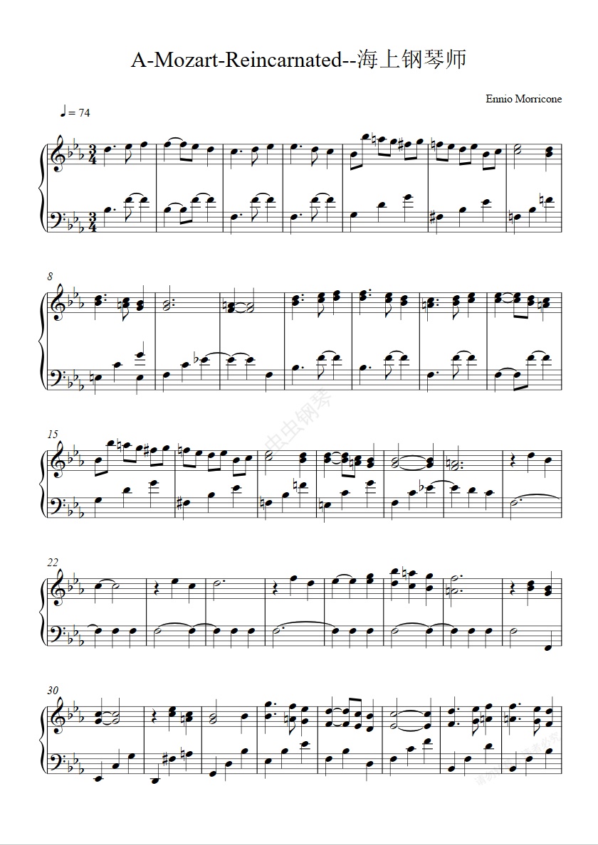 钢琴谱:【免费谱】海上钢琴师插曲------A Mozart Reincarnated
