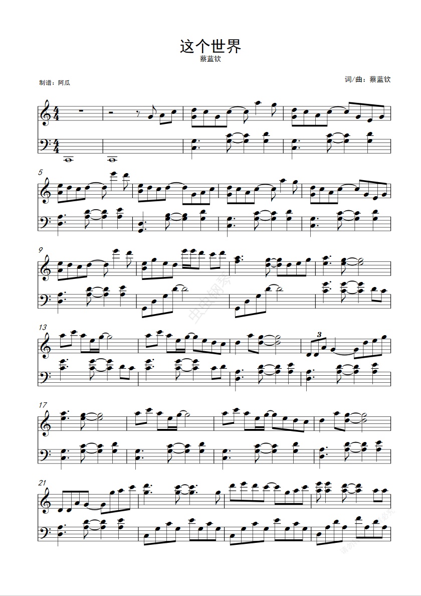 钢琴谱:这个世界-蔡蓝钦-完美C调