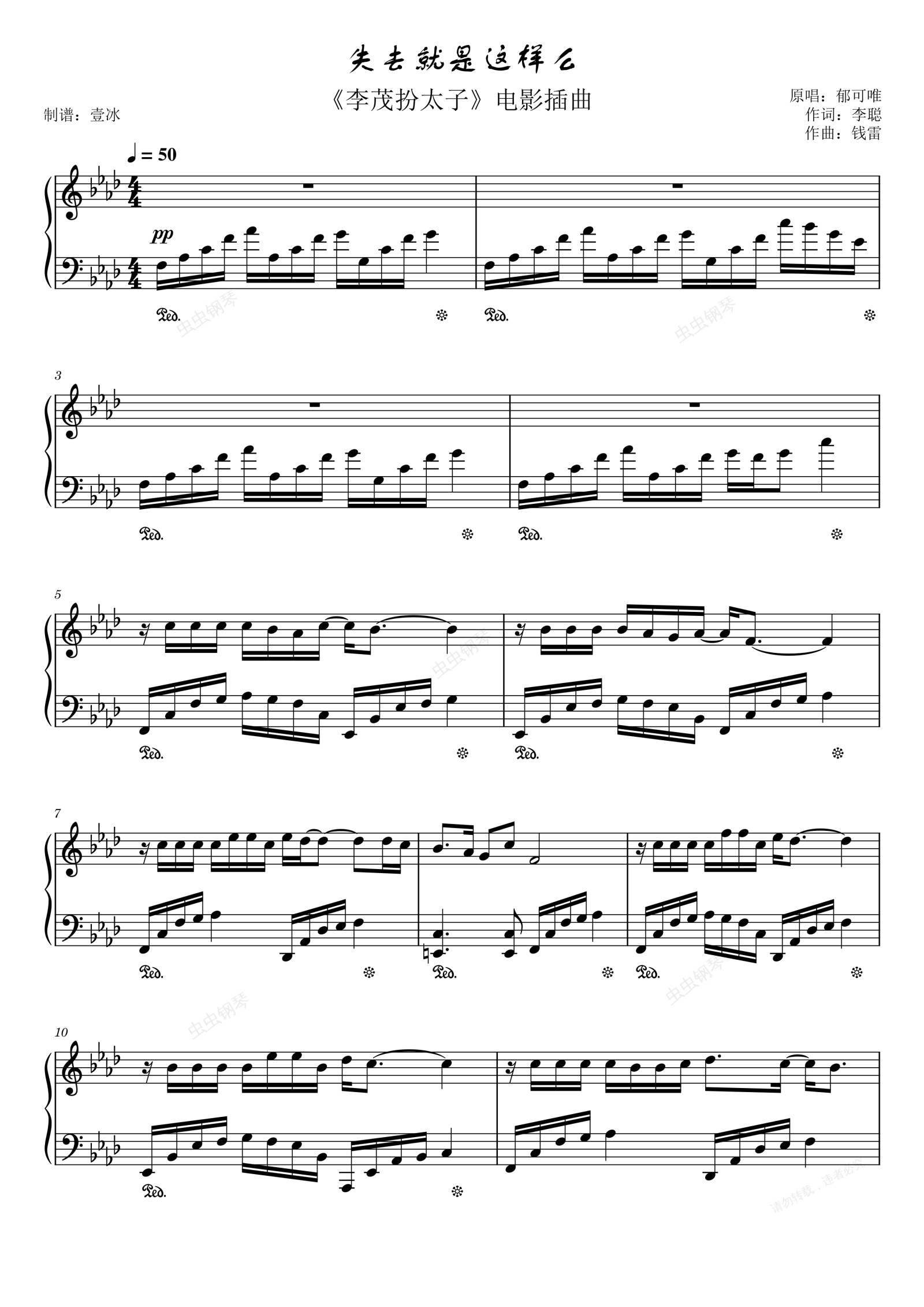 钢琴谱:失去就是这样么//《李茂扮太子》电影插曲