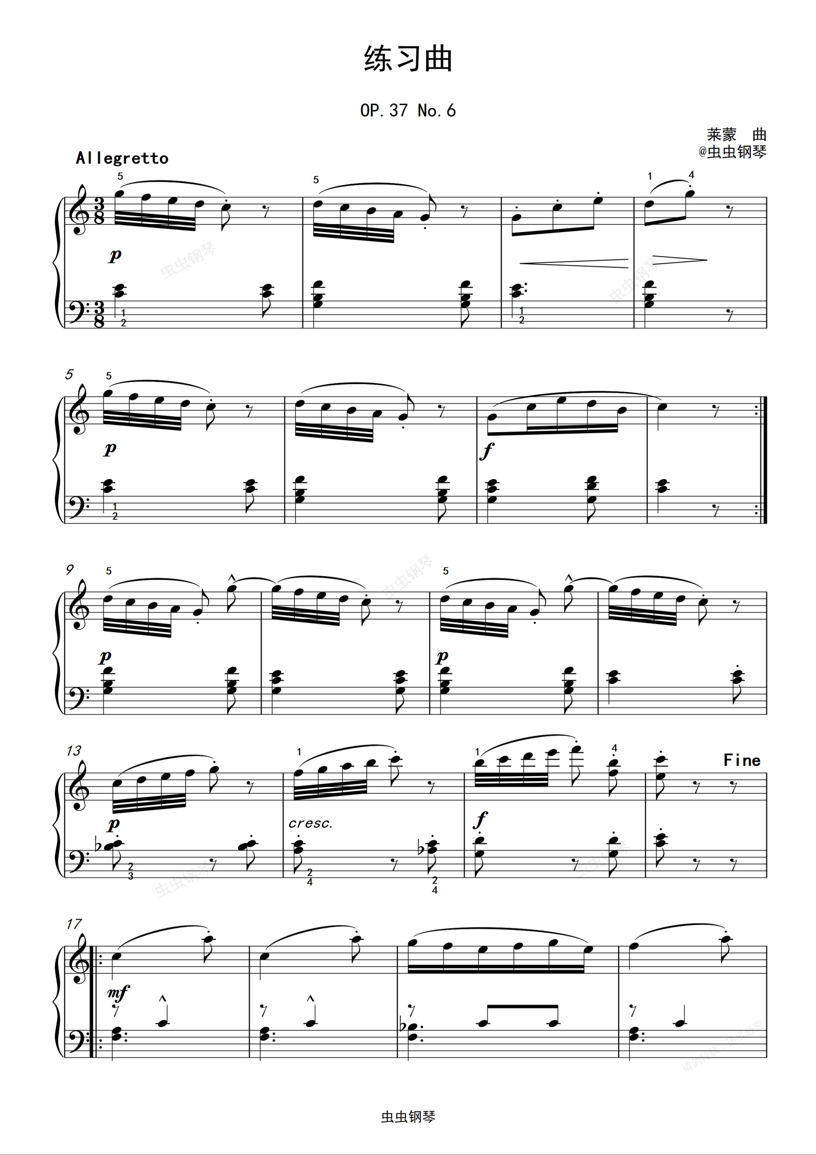 钢琴谱:4级-练习曲-莱蒙Op.37 No.6