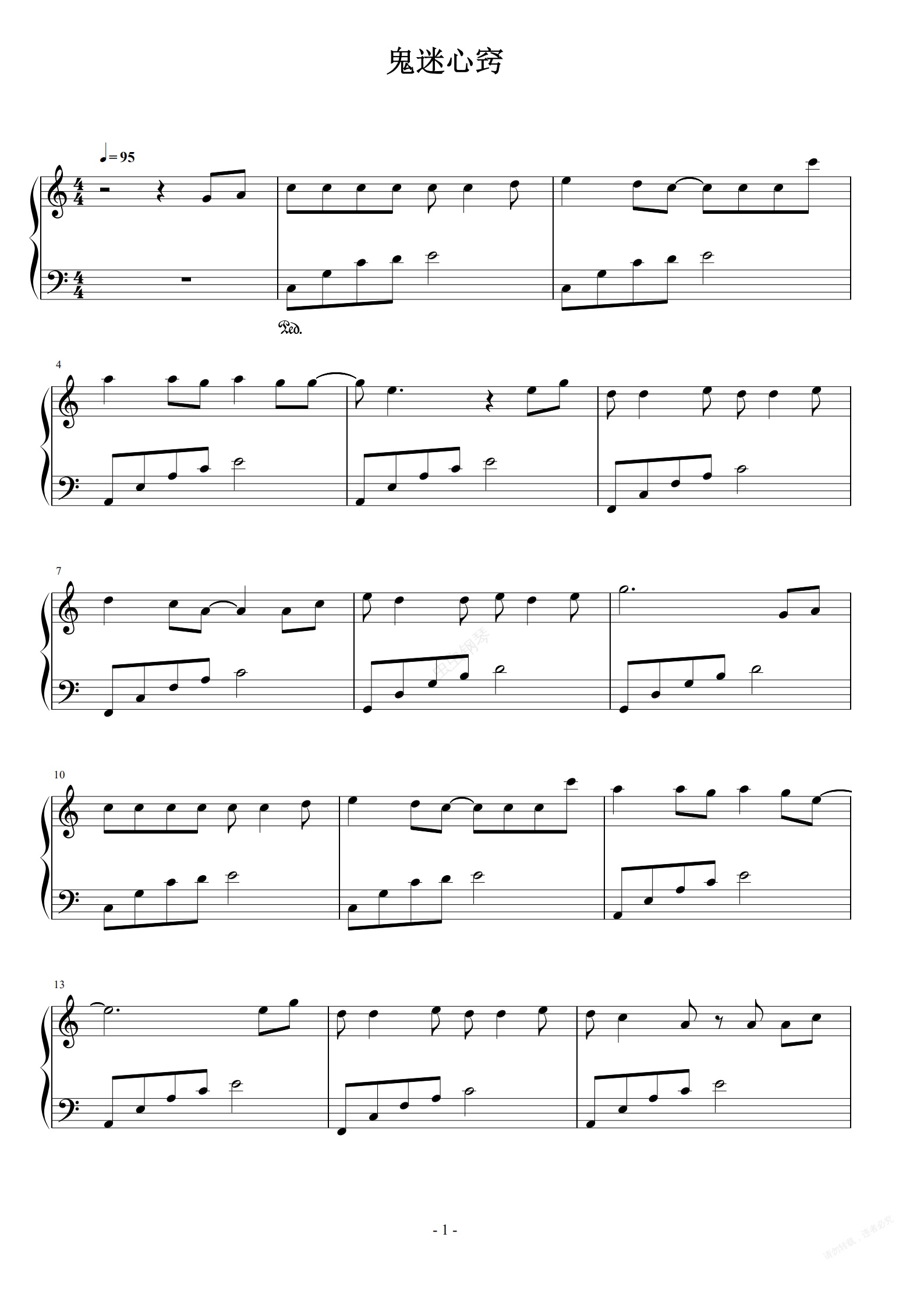 钢琴谱:鬼迷心窍 C调简易版 李宗盛