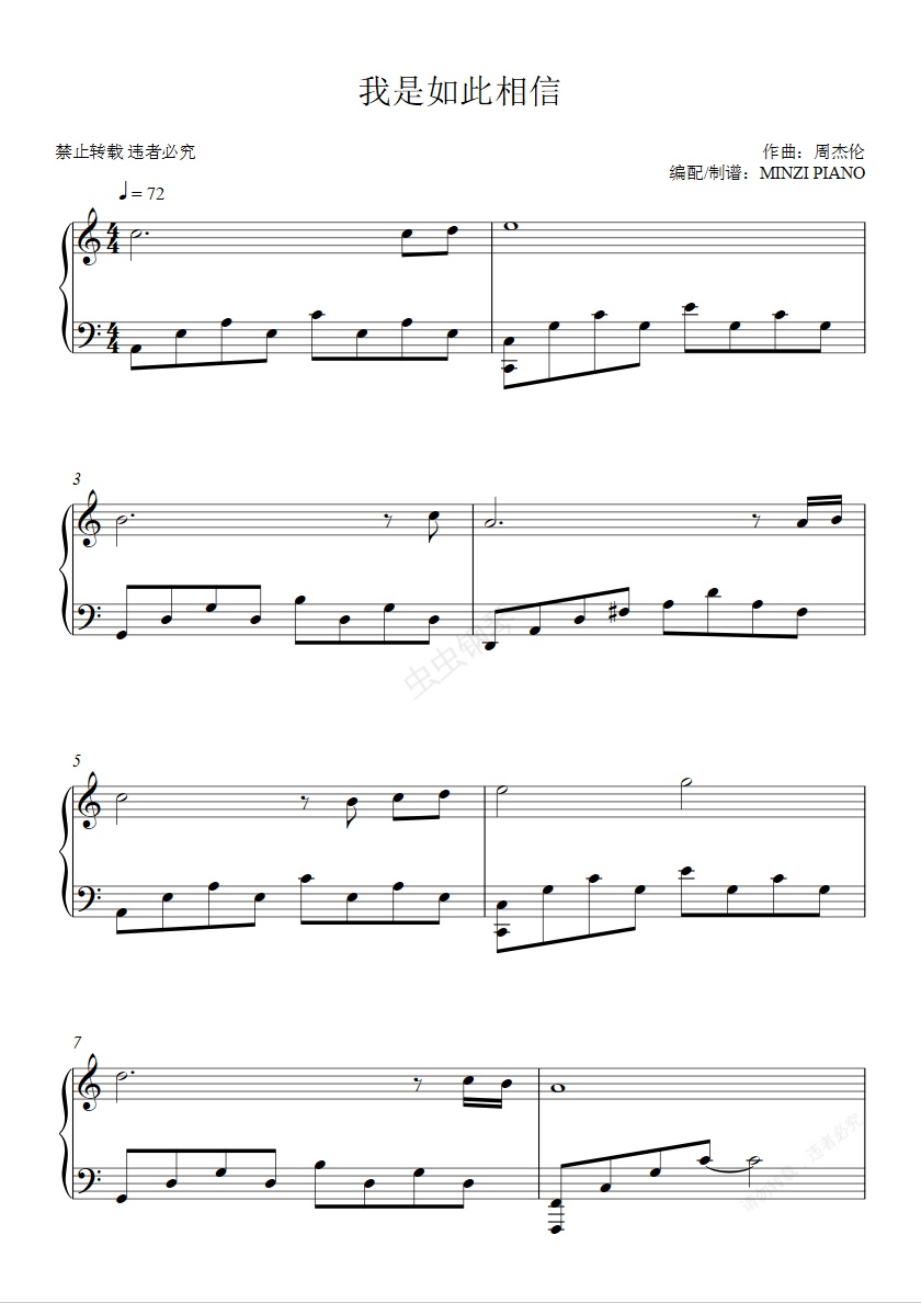 钢琴谱:周杰伦《我是如此相信》好听易弹