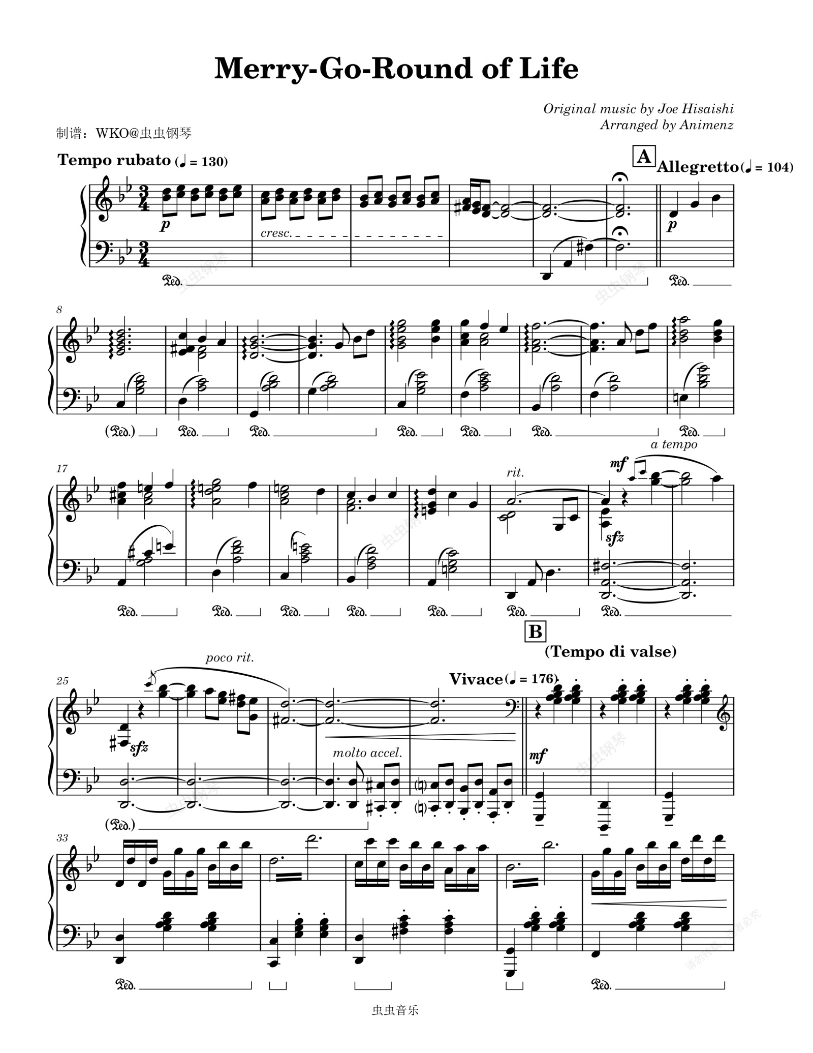 钢琴谱:Merry-Go-Round of Life/人生のメリーゴーランドAnimenz版
