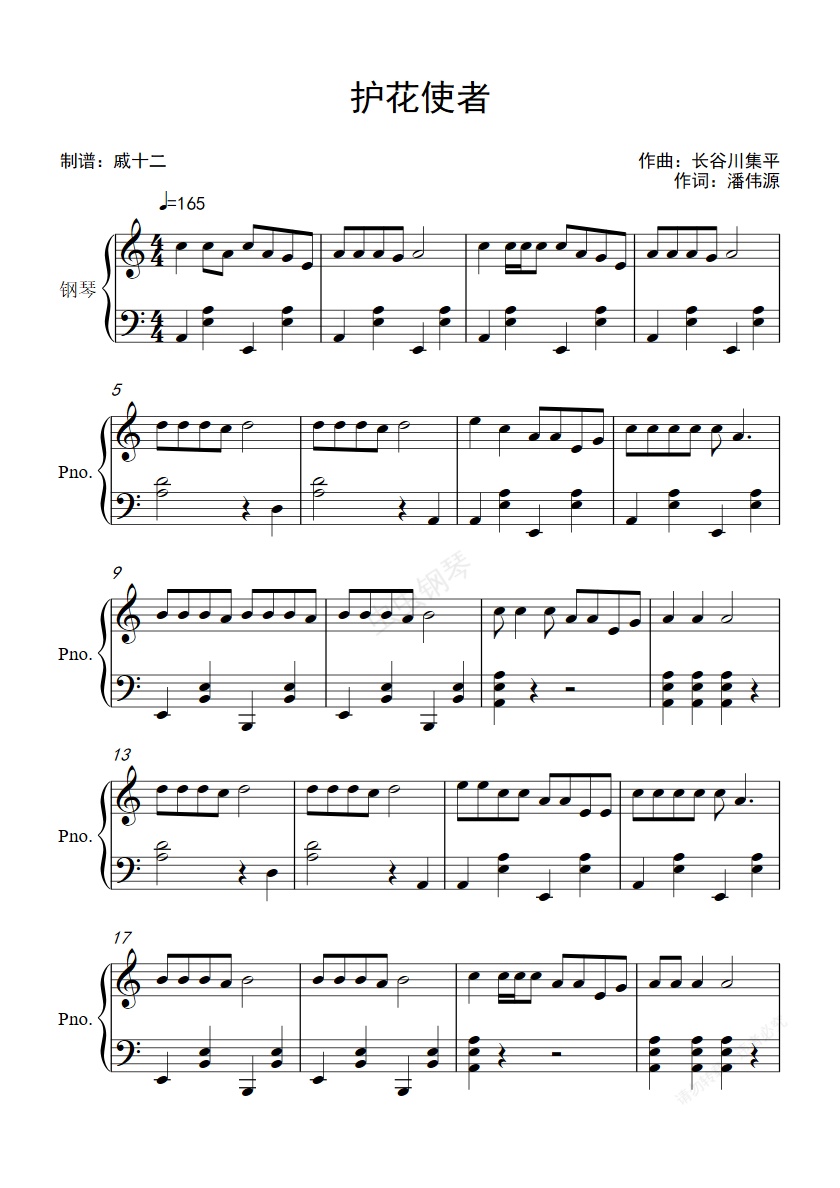 钢琴谱:护花使者-C调简单版