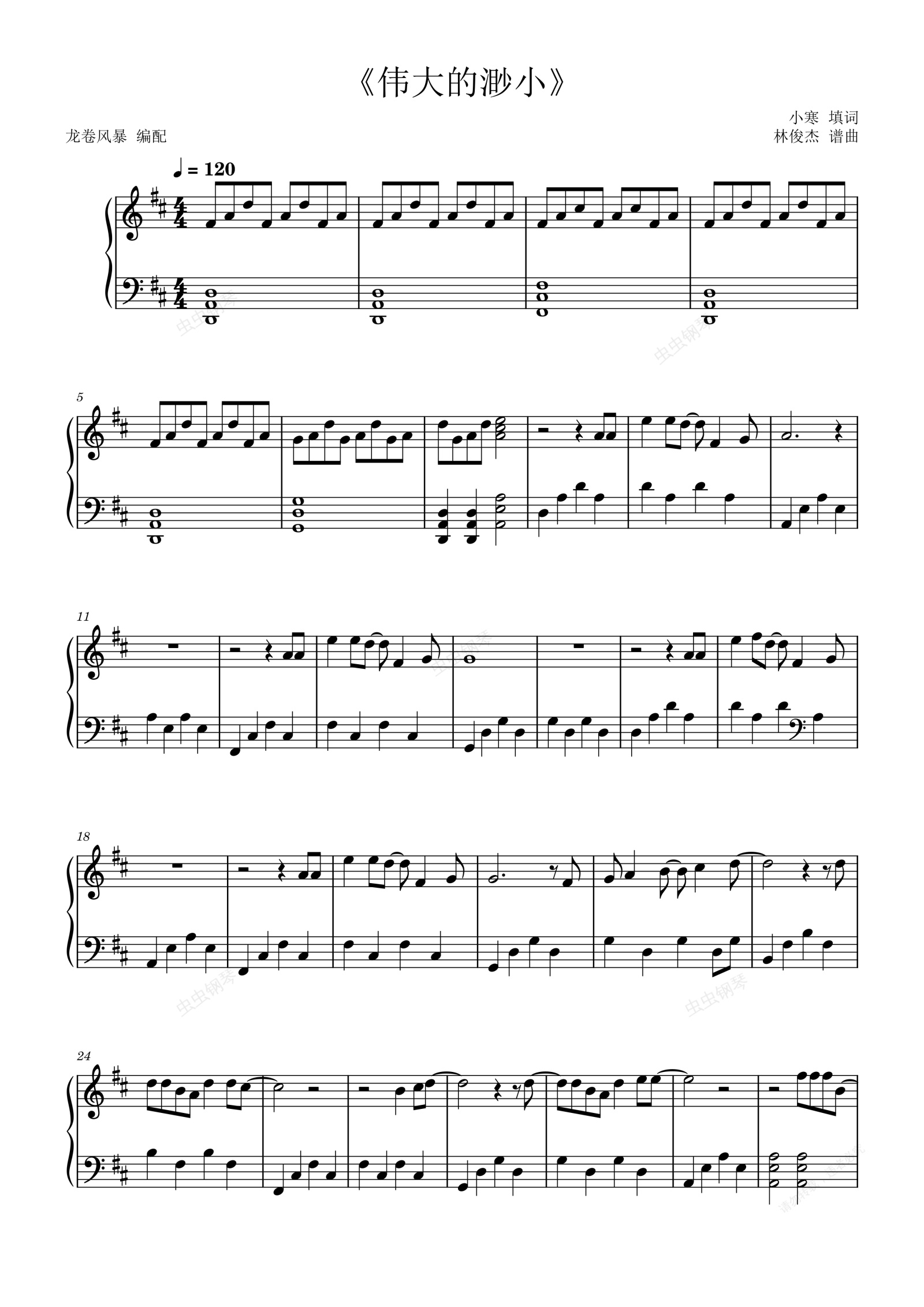钢琴谱:《伟大的渺小》林俊杰(唯美简单版)
