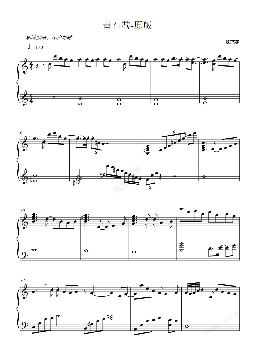 钢琴谱:【治愈纯音乐】青石巷-魏琮霏