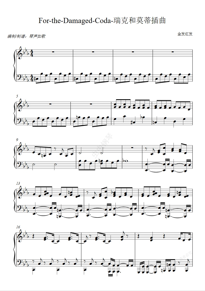 钢琴谱:【治愈纯音乐】For the Damaged Coda-瑞克和莫蒂插曲