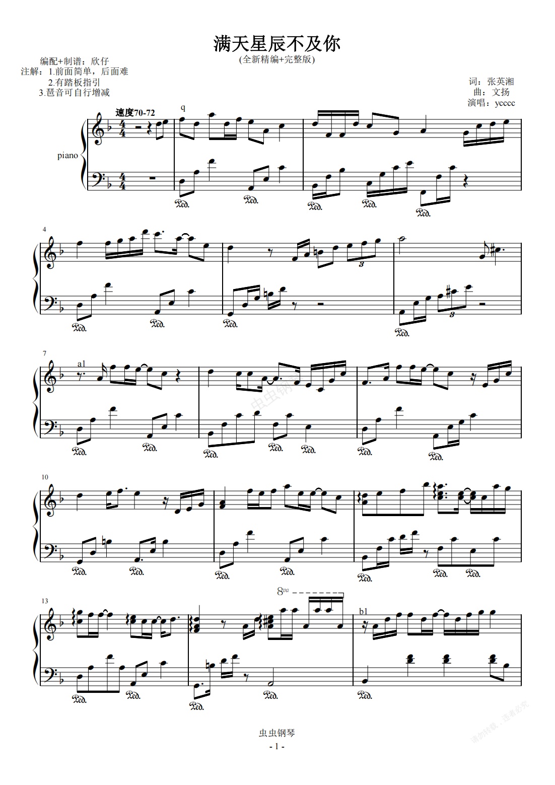 钢琴谱:ycccc-《满天星辰不及你》(全新精编+完整版)