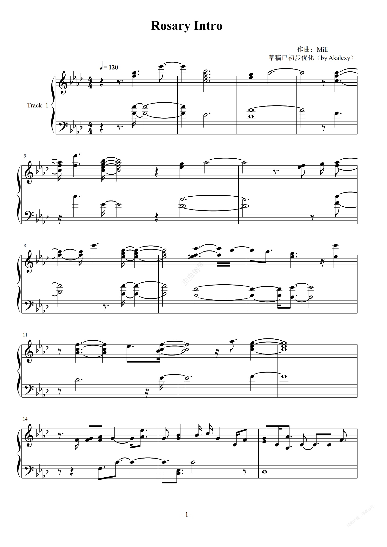 钢琴谱:终焉的莉莉《Rosary Intro》