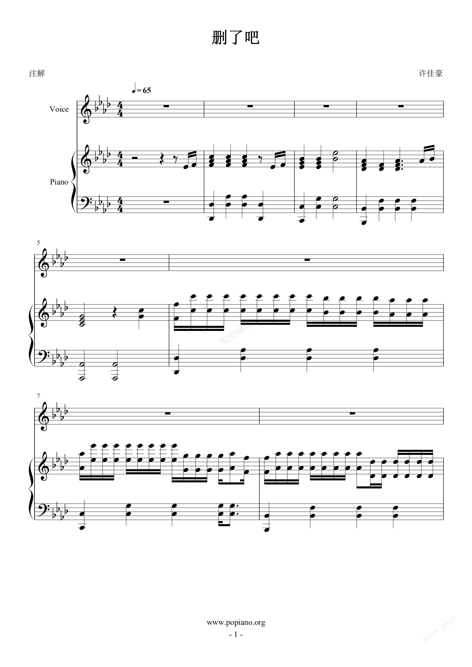 钢琴谱:删了吧 完美弹唱谱