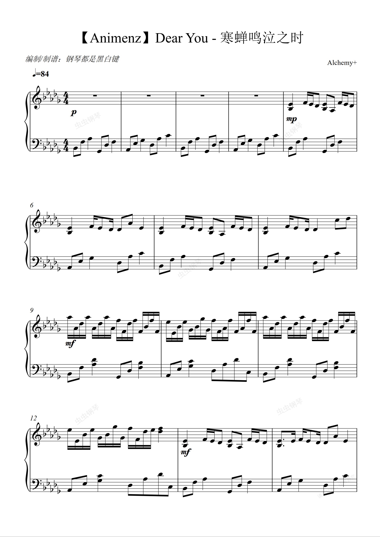 钢琴谱:【Animenz扒谱】 You - 寒蝉鸣泣之时 (超治愈纯音乐)