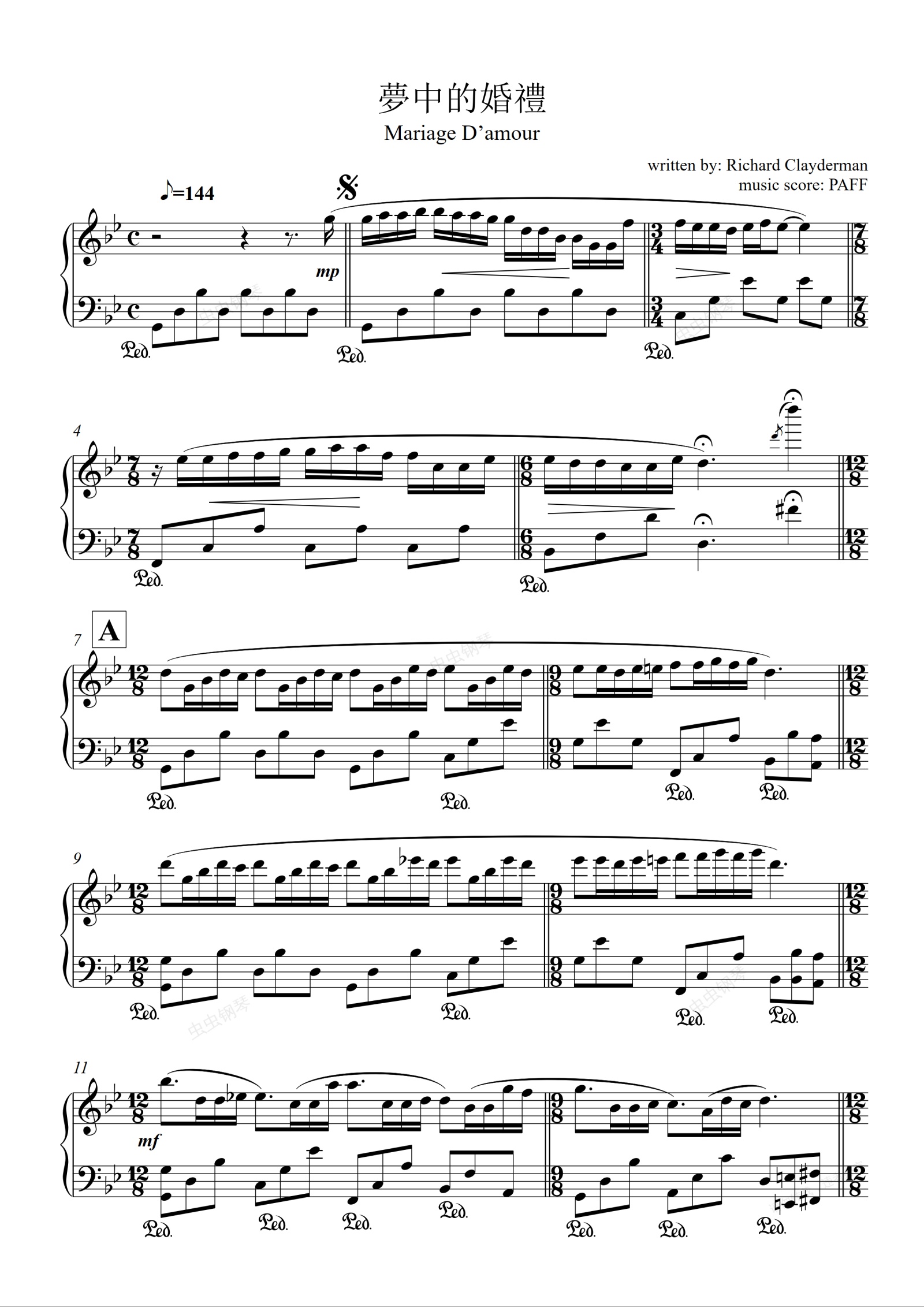 钢琴谱:梦中的婚礼