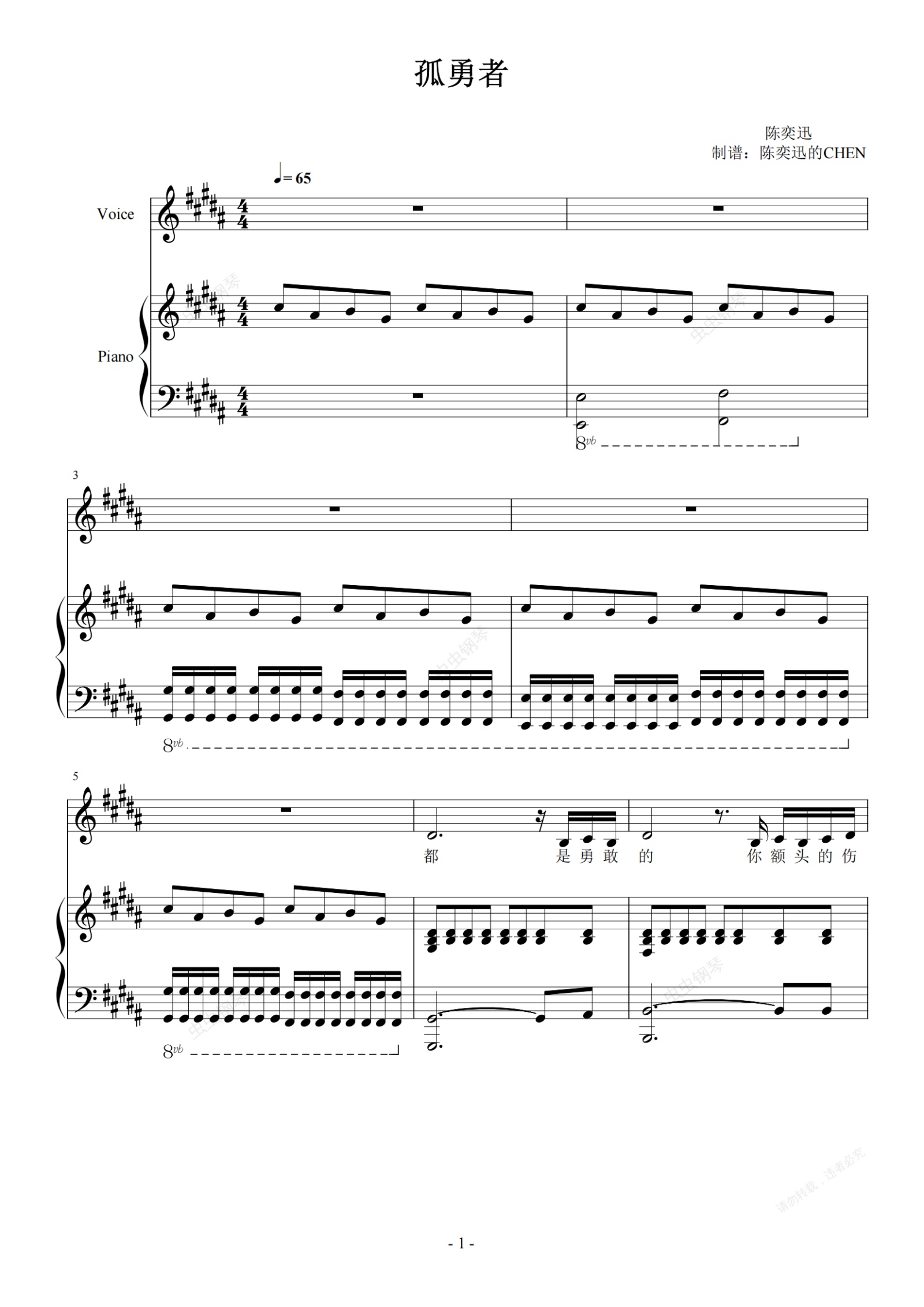 钢琴谱:孤勇者 超燃弹唱谱