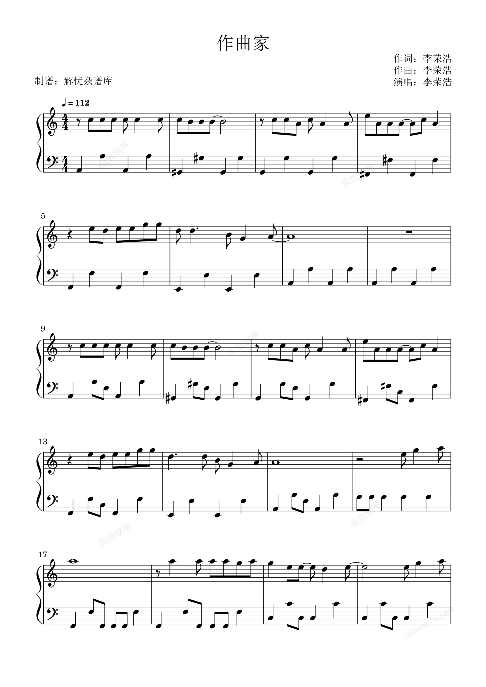 李荣浩在结束专辑《模特》的宣传工作后,又继续着音乐制作人的工作,一边为电影创作主题曲,一边为艺人制作主打歌,在自我创作与为他人创作的两种思维转换下,他不断以旁观者的角色去清醒的看待自己内心的变化,感受生活的每一个细节,于是《作曲家》这首歌的概念和旋律就这样自然而然的孕育而生,歌曲里包含他对于快乐最简单的理解。他希望借该曲去提醒自己和每个人:其实抛弃一些矫情的身份修饰,不在刻意制造人生伪高潮,去直面真实自我,人人都是自己乐章的《作曲家》