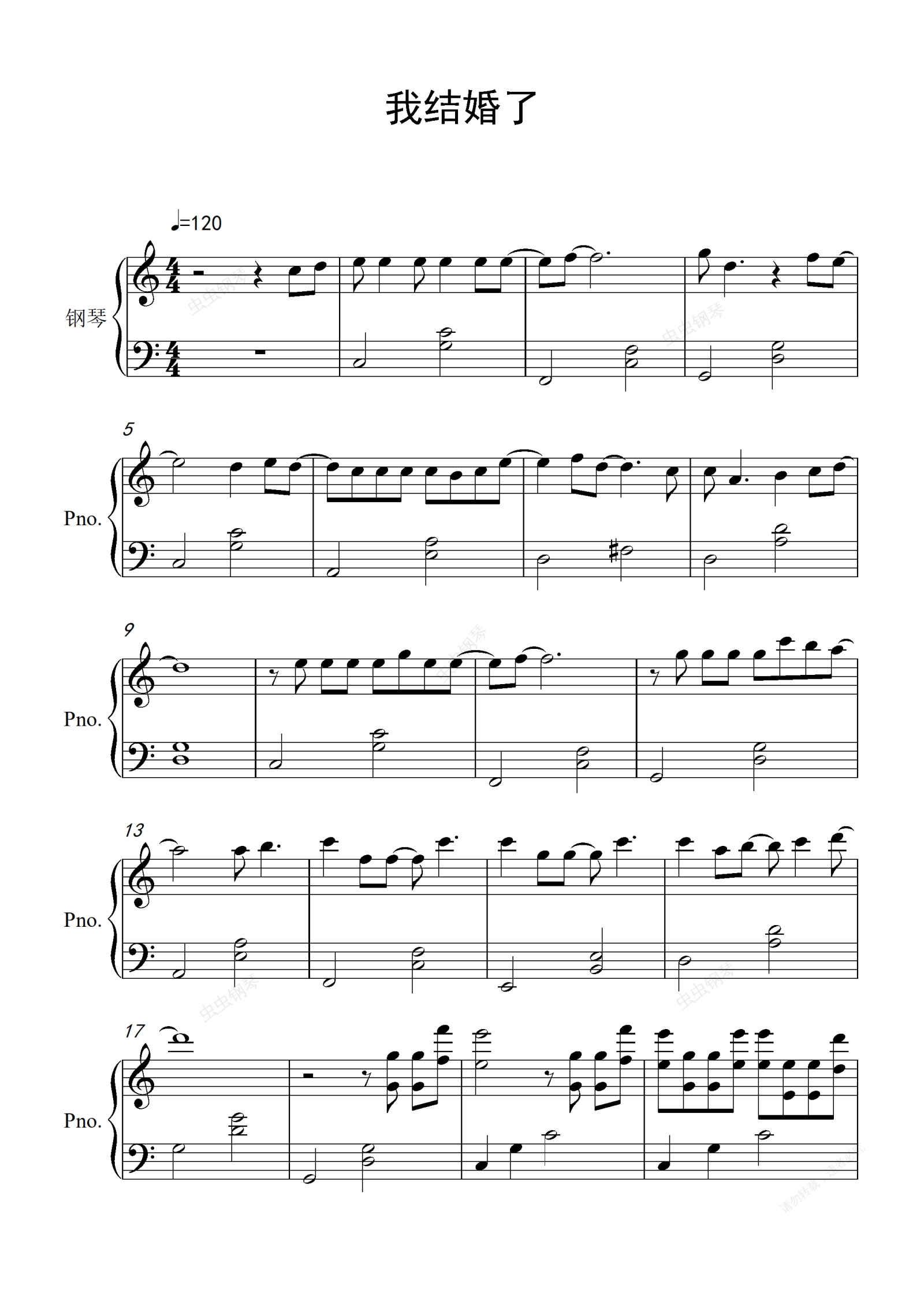 钢琴谱:我结婚了-C调简单版
