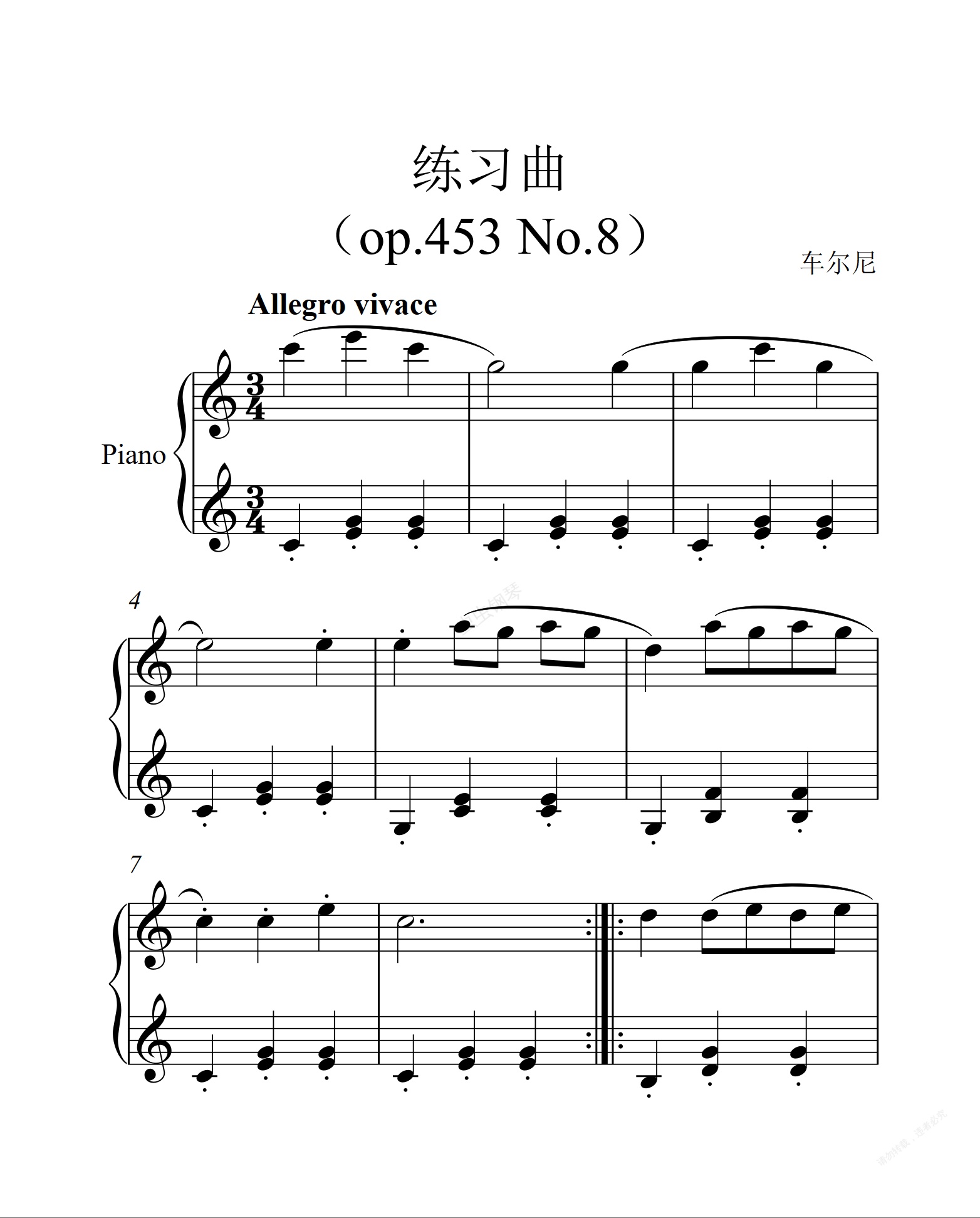 钢琴谱:车尔尼 453第八首