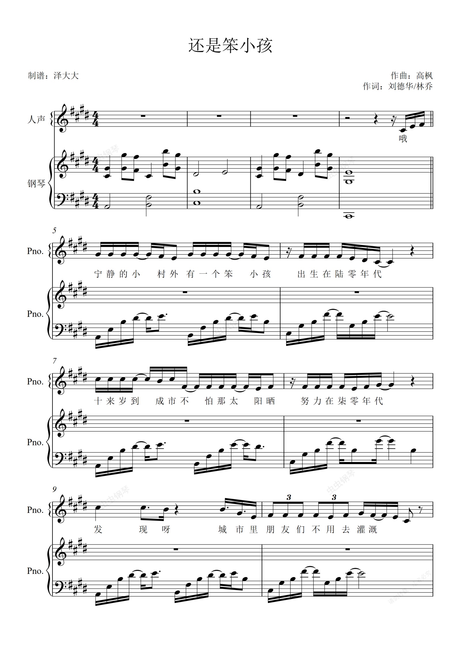 钢琴谱:还是笨小孩【原版弹唱附词】泽大大 易烊千玺 刘德华