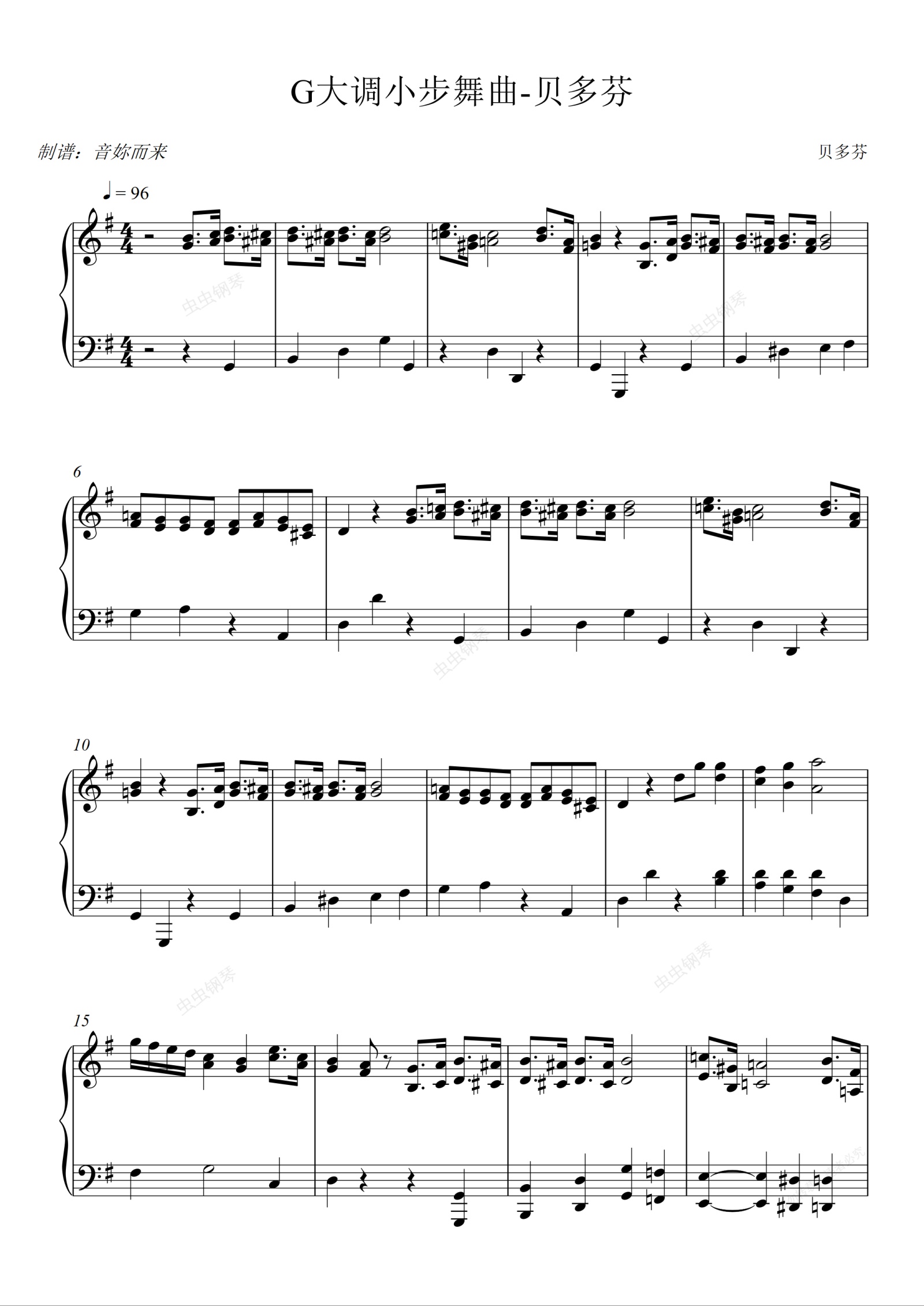 钢琴谱:G大调小步舞曲-贝多芬 【古典必弹曲目】