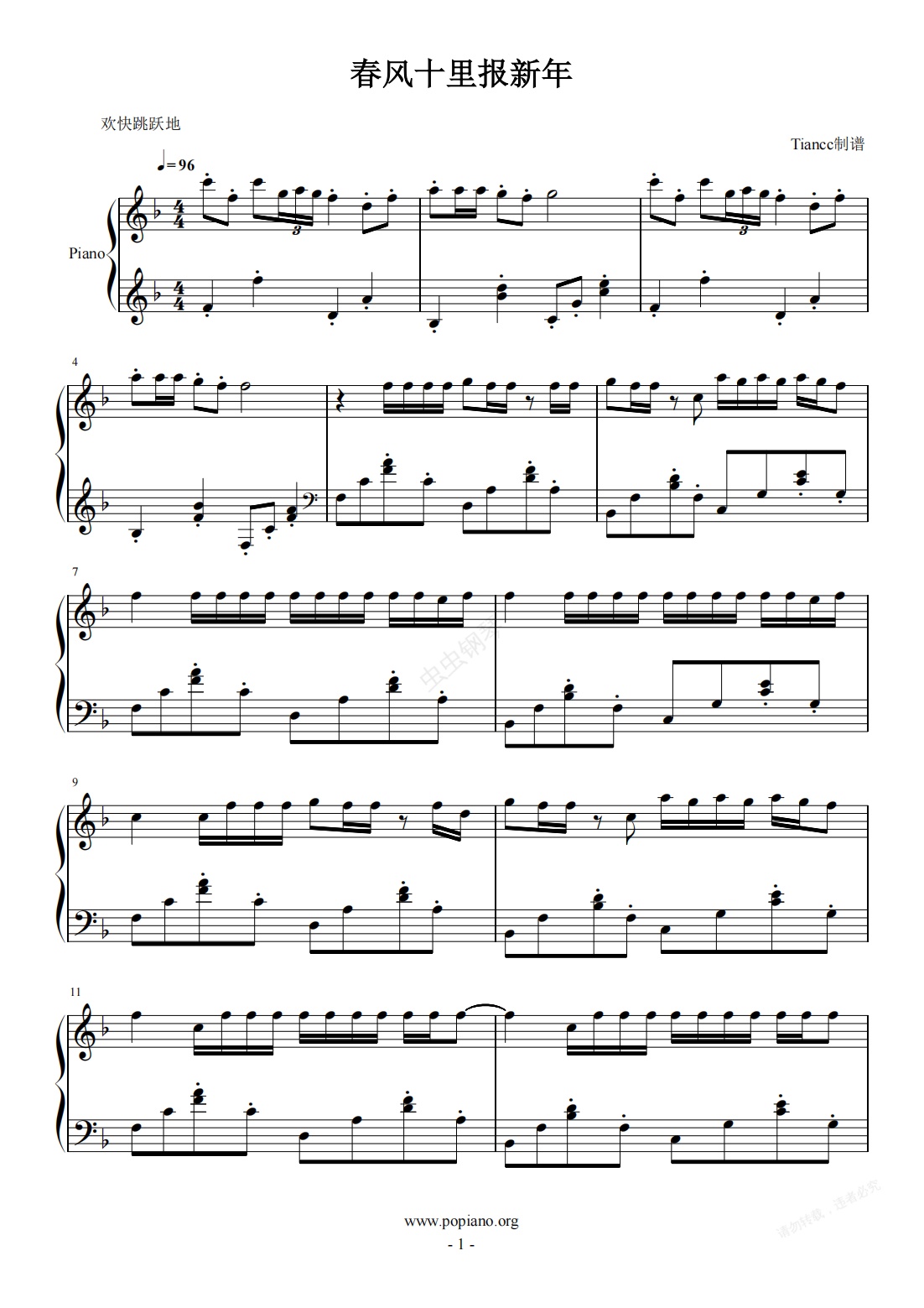 钢琴谱:《春风十里报新年》新年快乐~849难度