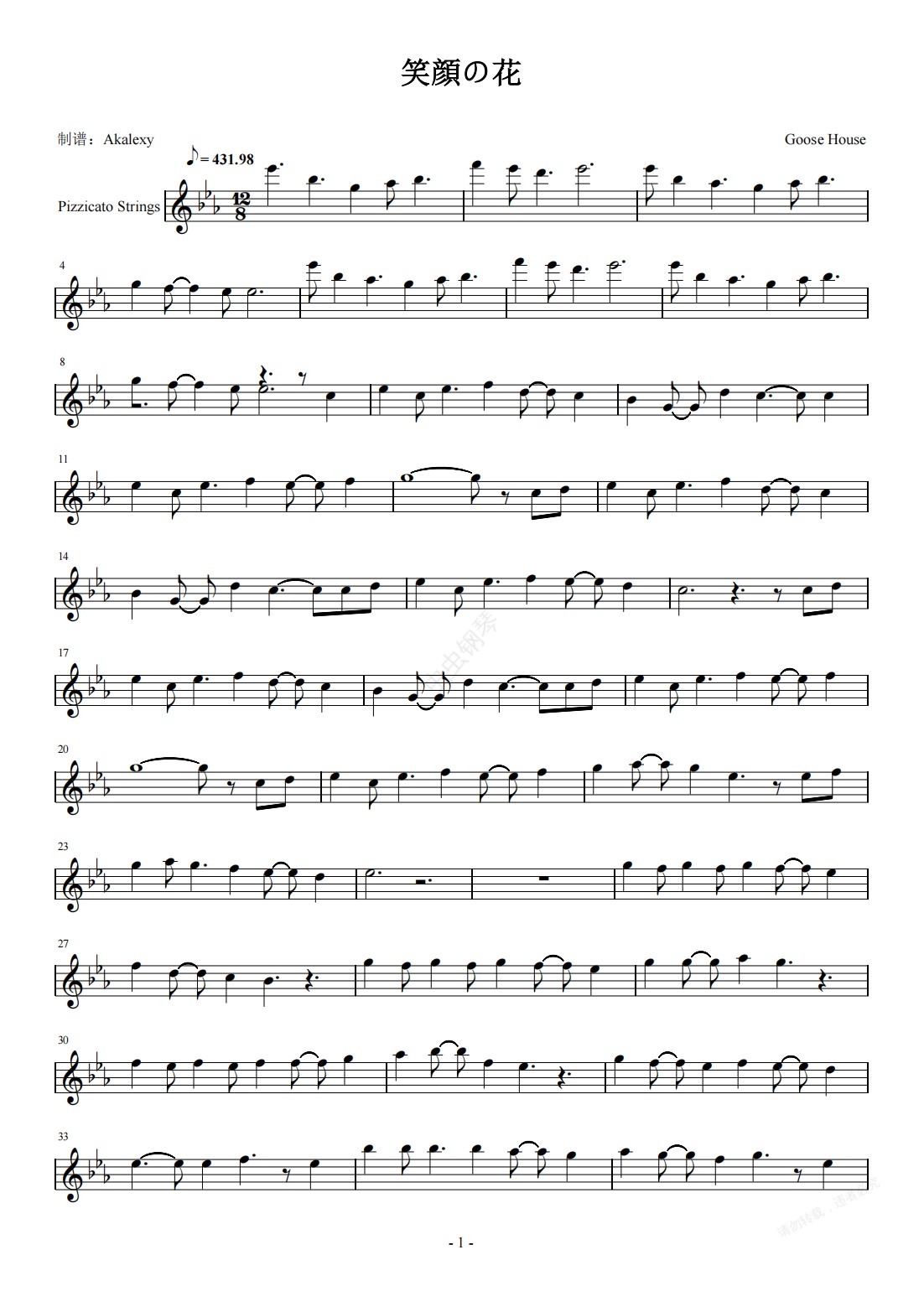 钢琴谱:四月是你的谎言《笑顔の花》极简版