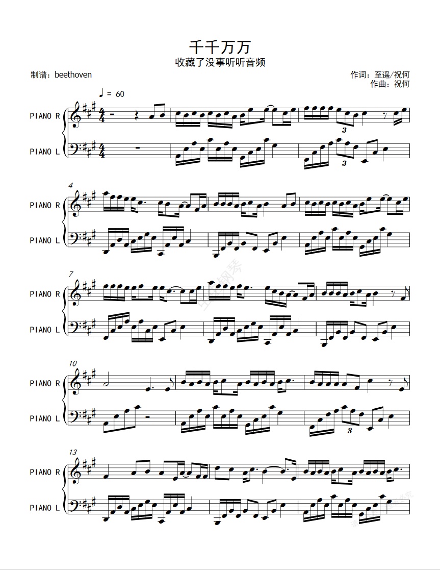 钢琴谱:千千万万-深海鱼子酱-原版