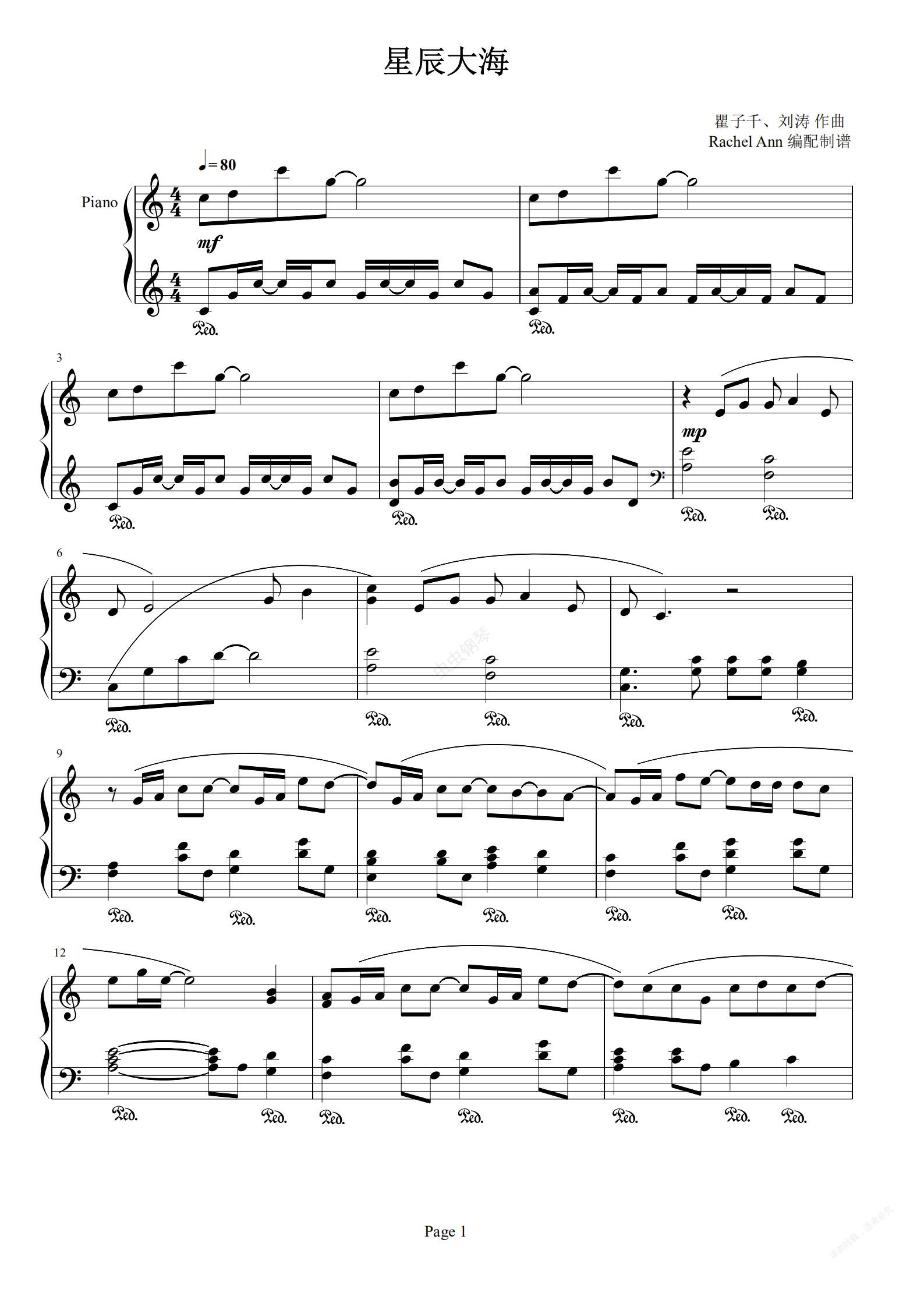 音频是打谱软件直接输出的MIDI,听觉效果不是很好,亲测钢琴演奏效果非常好