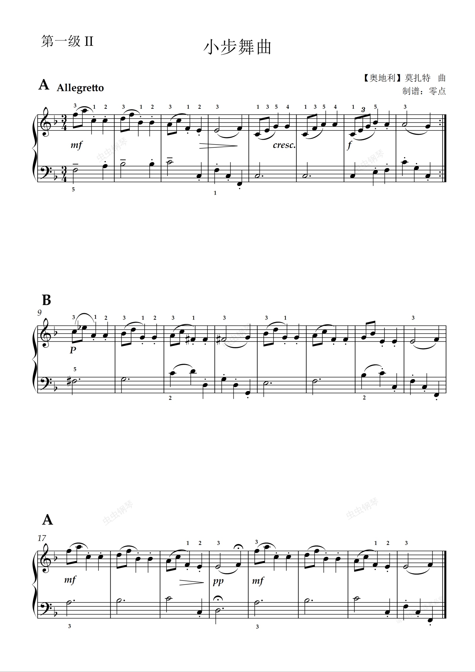 钢琴谱:第一级 小步舞曲(莫扎特)