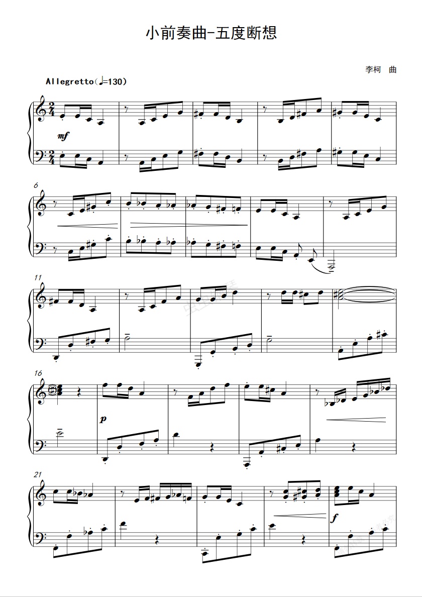 钢琴谱:4级-小型乐曲-小前奏曲-五度断想
