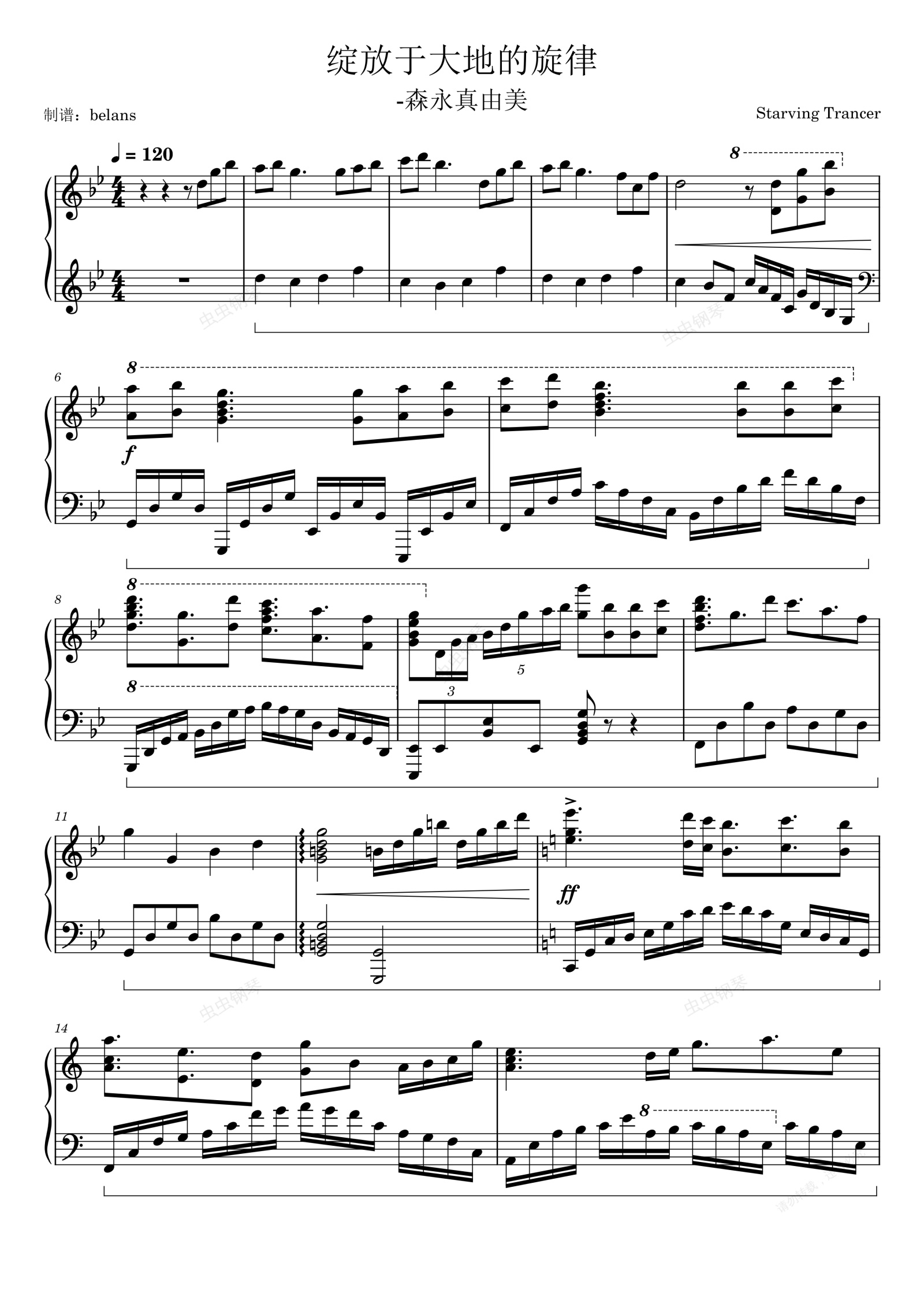 钢琴谱:大地に咲く旋律(绽放于大地的旋律)-森永真由美 超高还原版