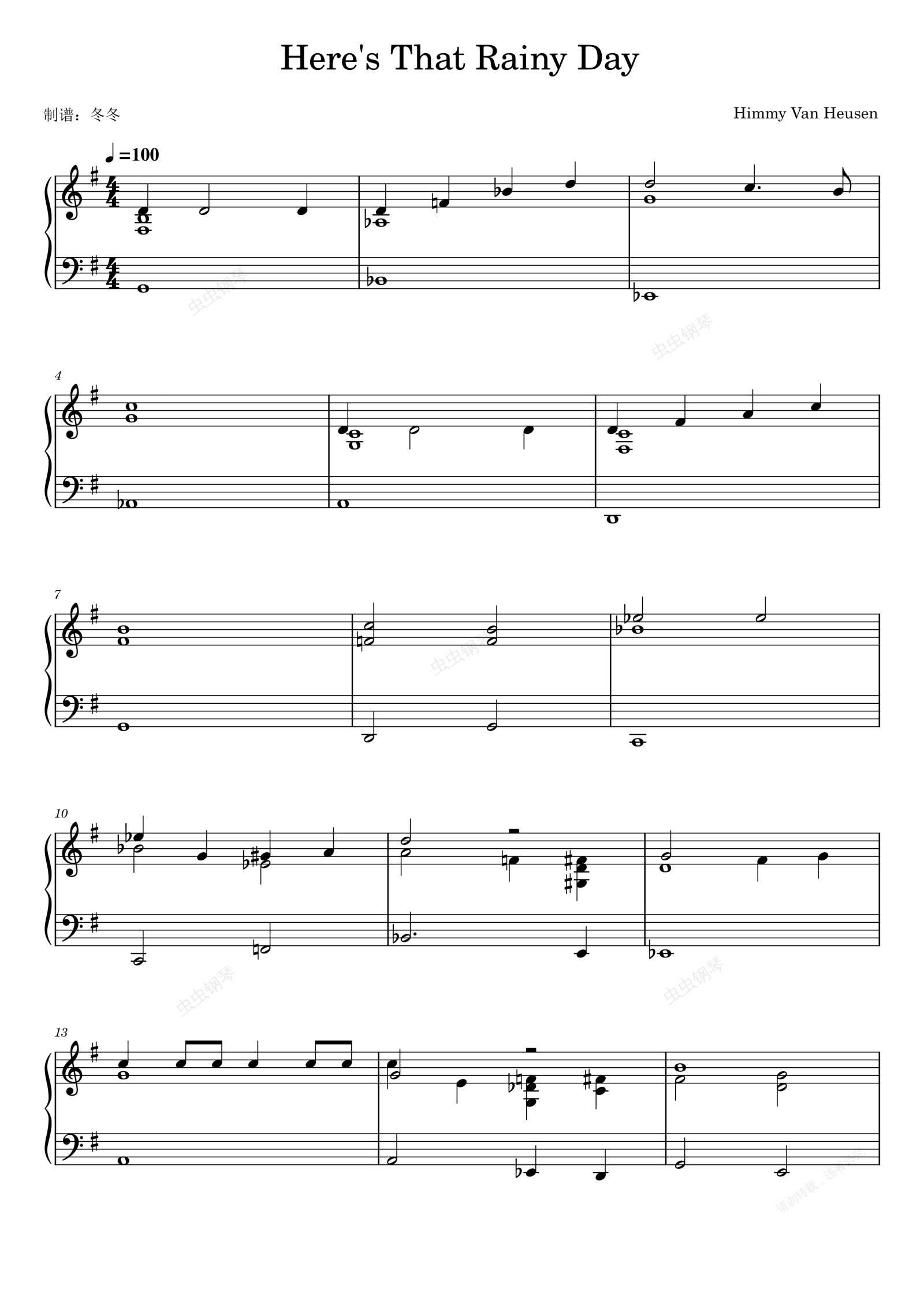 钢琴谱:Here's That Rainy Day