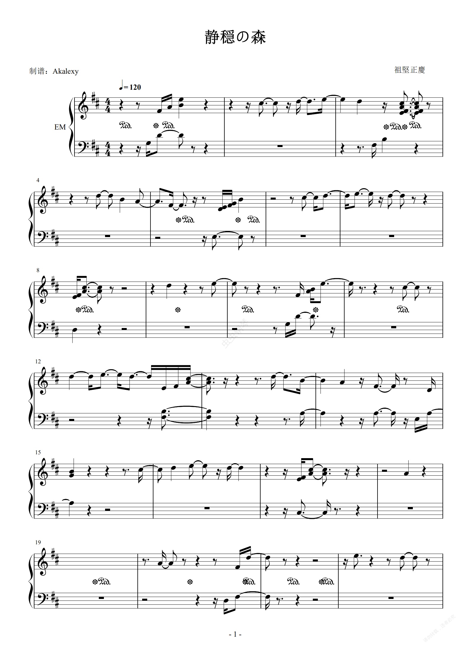 钢琴谱:最终幻想14【静穏の森】