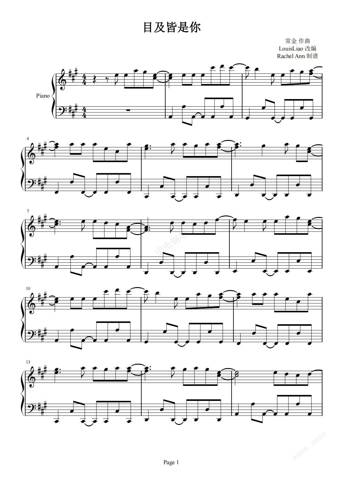 钢琴谱:小蓝背心-目及皆是你 (心跳版)钢琴独奏 台湾编曲家LouisLiao