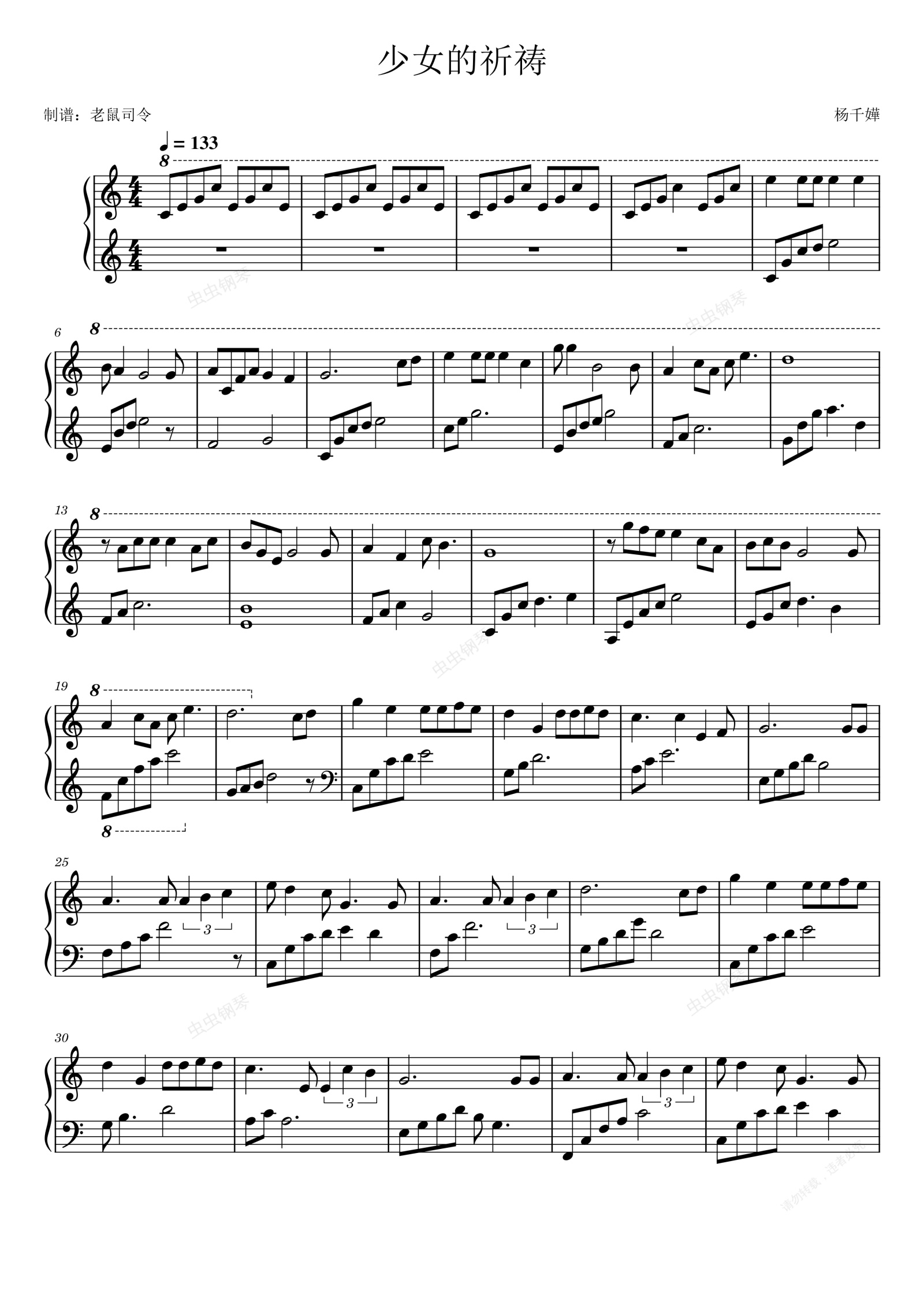 钢琴谱:少女的祈祷(杨千嬅演唱歌曲,许乐独奏版)