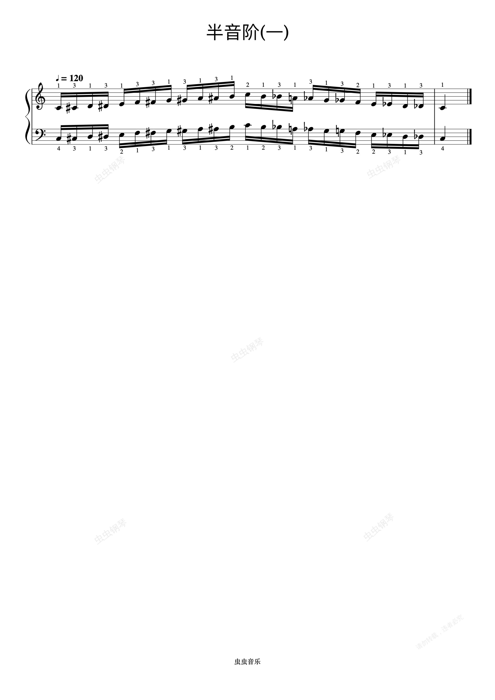 钢琴谱:哈农 NO.34-1 半音阶(一)