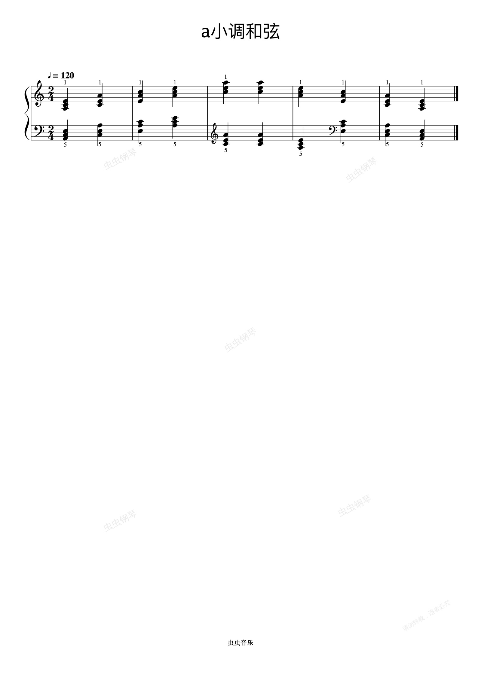 钢琴谱:哈农 NO.32-3 a小调和弦