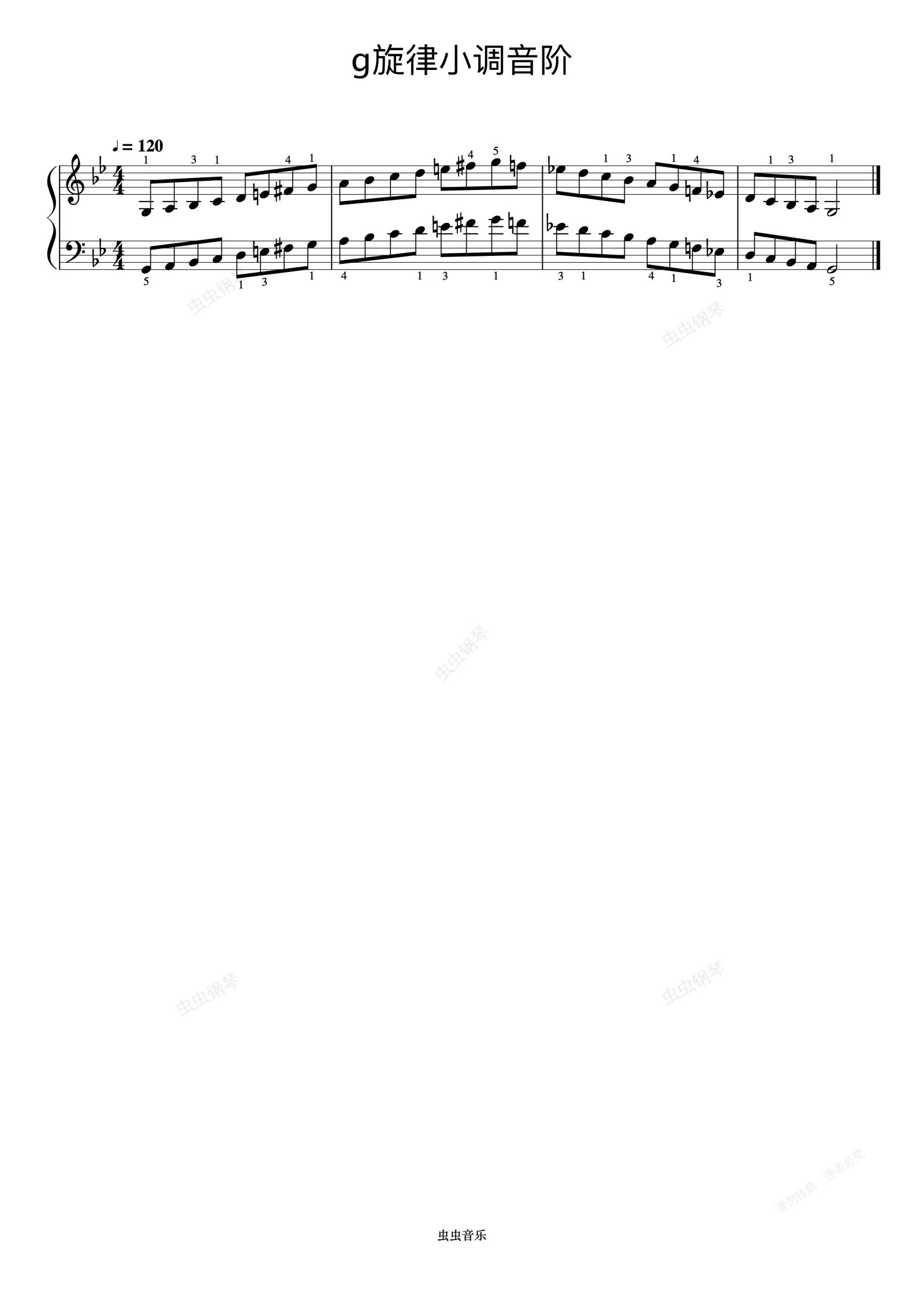钢琴谱:哈农 No.33-15 g旋律小调音阶