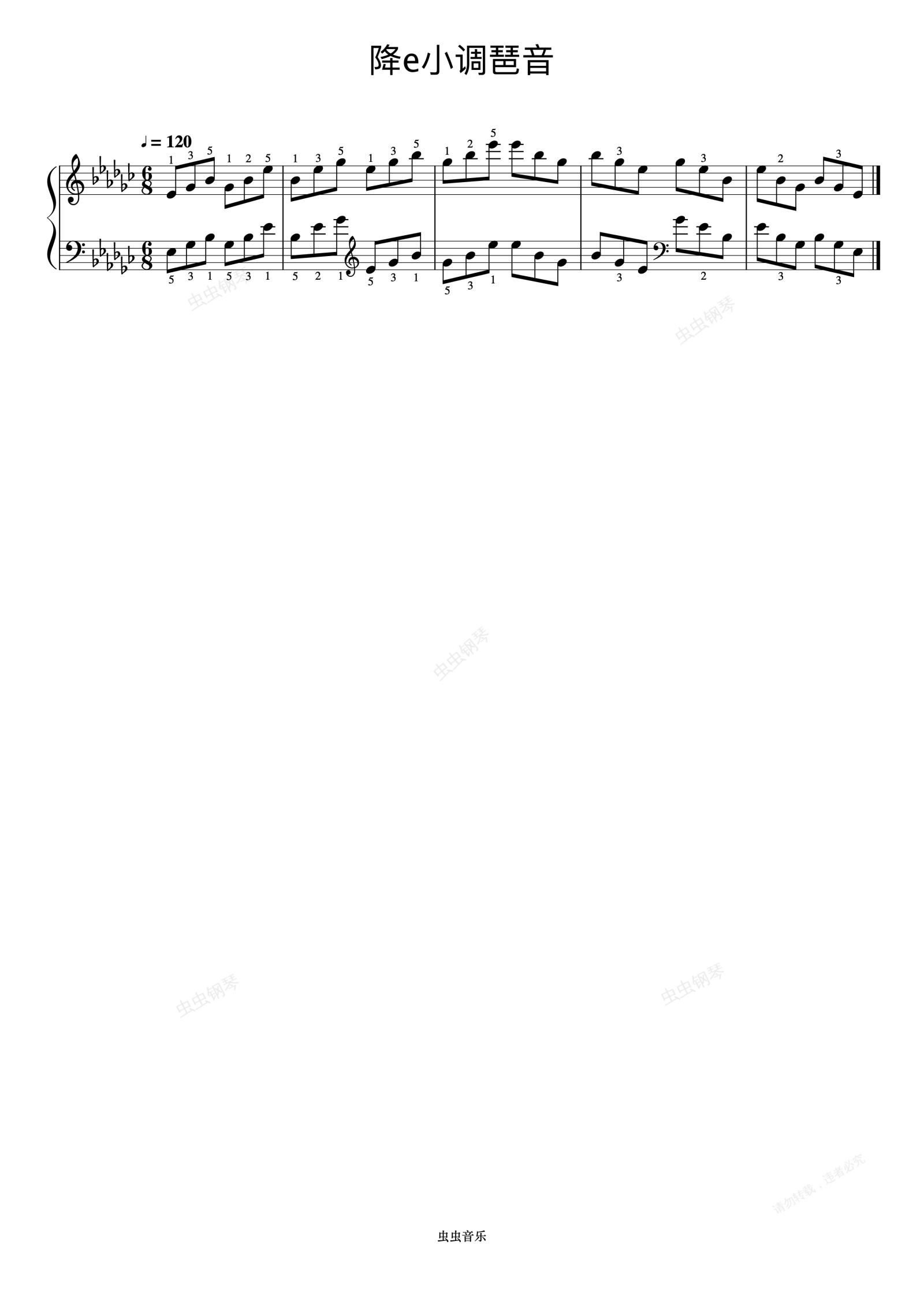 钢琴谱:哈农 NO.32-48 降e小调琶音