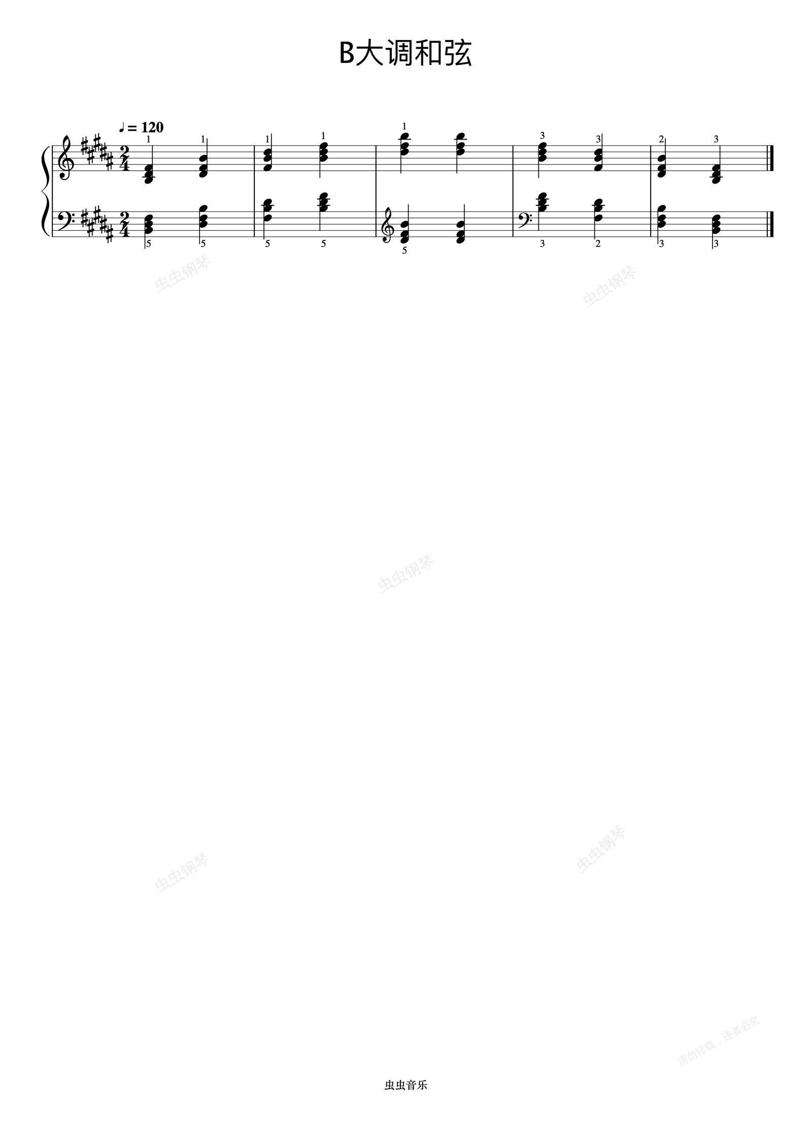 钢琴谱:哈农 NO.32-37 B大调和弦