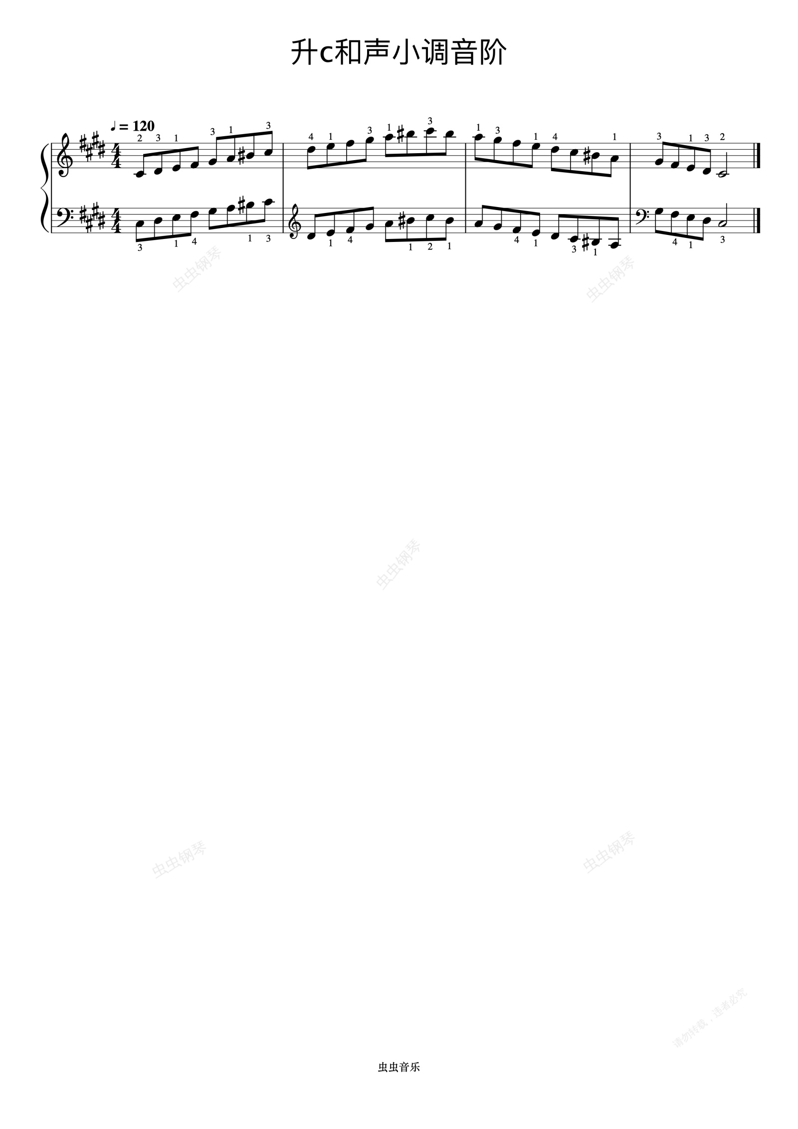 钢琴谱:哈农 No.33-23 升c和声小调音阶