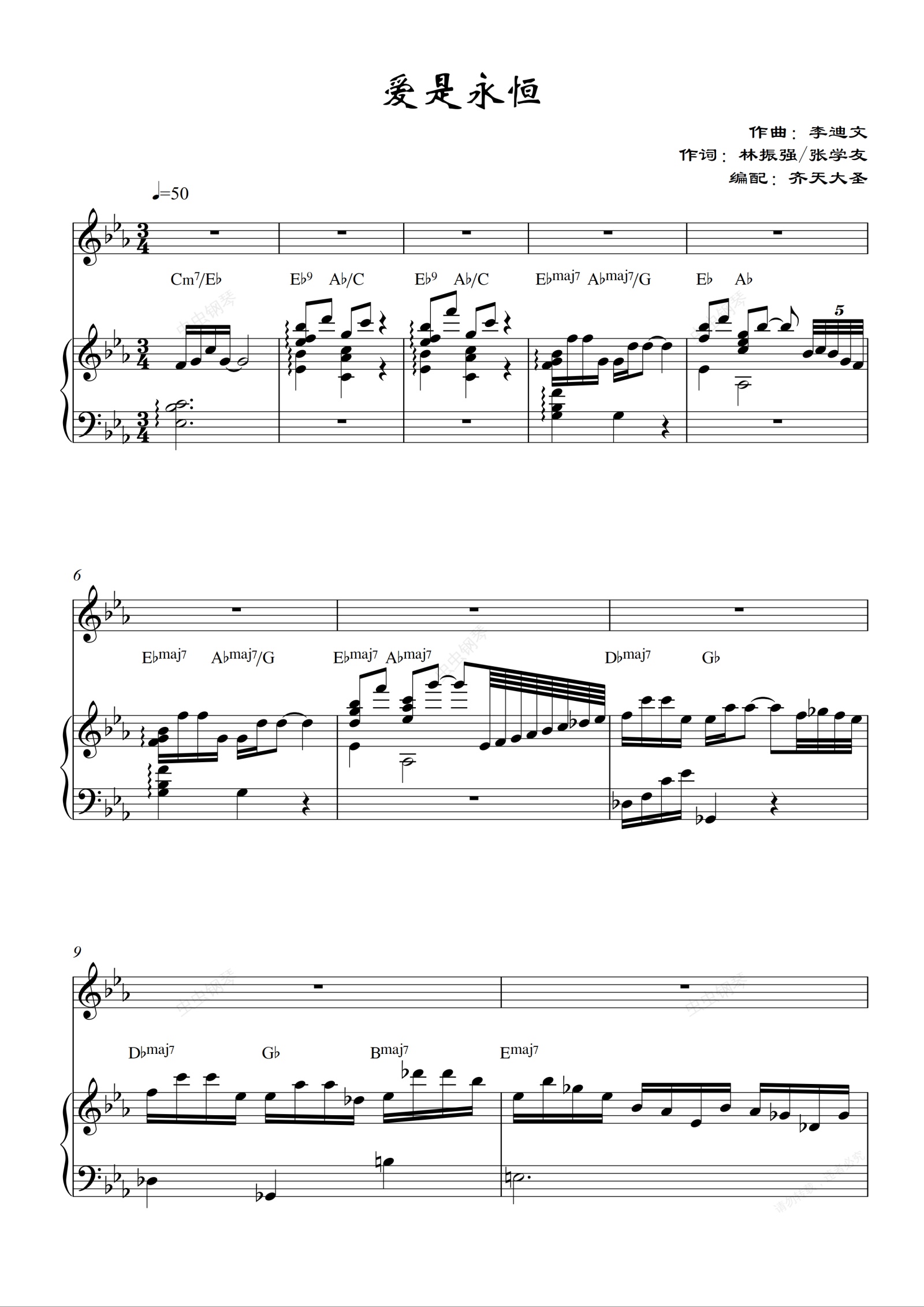 钢琴谱:爱是永恒 降E调 完美弹唱