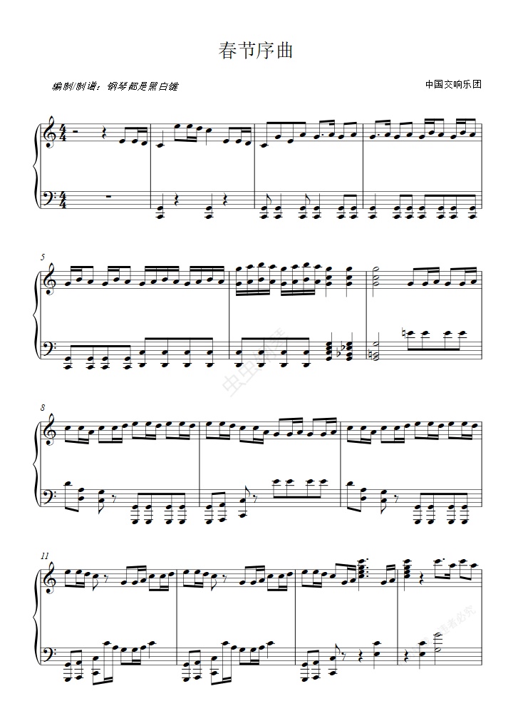 钢琴谱:春节序曲 -中国交响乐团 【燃燃燃钢琴独奏】