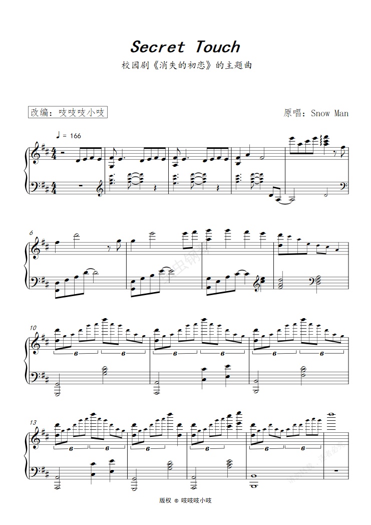 钢琴谱:Secret Touch 《消失的初恋》的主题曲