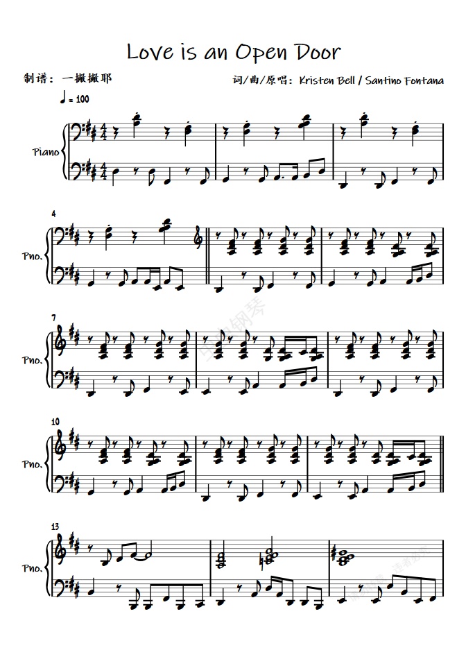 钢琴谱:【弹唱谱】Love is an Open Door 《冰雪奇缘》「一撇撇耶」