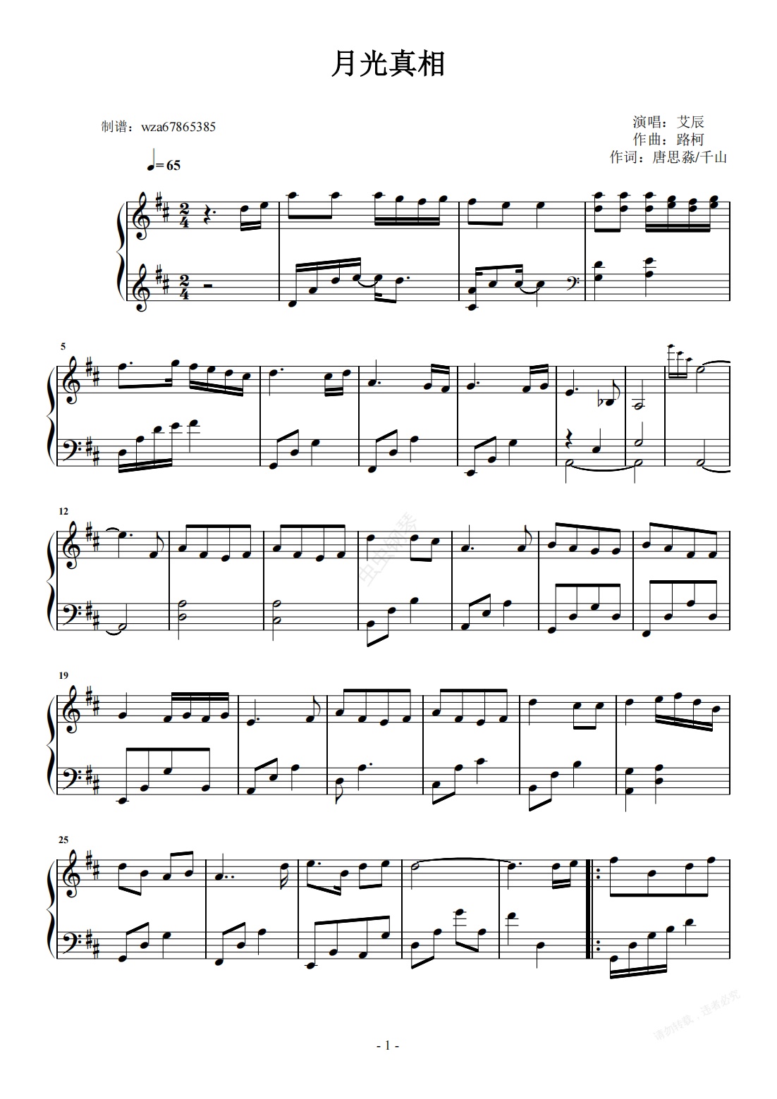 钢琴谱:月光真相