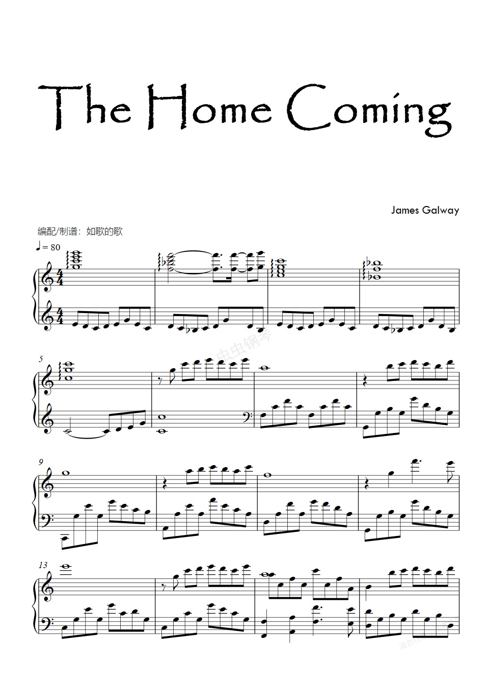 钢琴谱:The Home Coming归乡金笛王轻音乐名曲