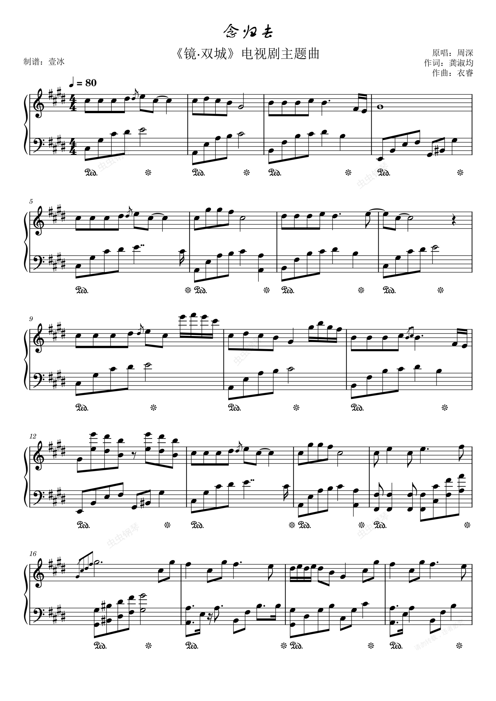 钢琴谱:念归去//《镜·双城》电视剧主题曲-原调
